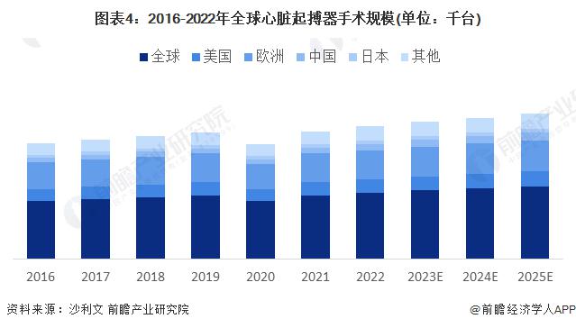 全球进行的脏起搏器植入术的数量预期将由 2022 年的 1.36 百万台增加至 2025 年的 1.44 百万台。其中中国心脏起搏器的手术规模从 2022 年的 12 万台增长到 2025 年的 16.2 万台。