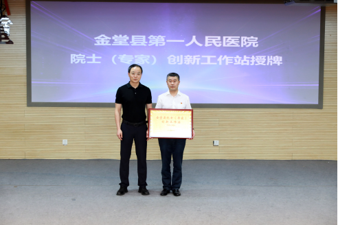 现场为金堂县第一人民医院院士(专家)创新工作站进行了授牌。近年来,金堂县第一人民医院持续推动创新发展,签约引进华西医院研究员、博士生导师李康等高层次专家团队5人,积极开展医疗先进技术成果转化与人才培养。